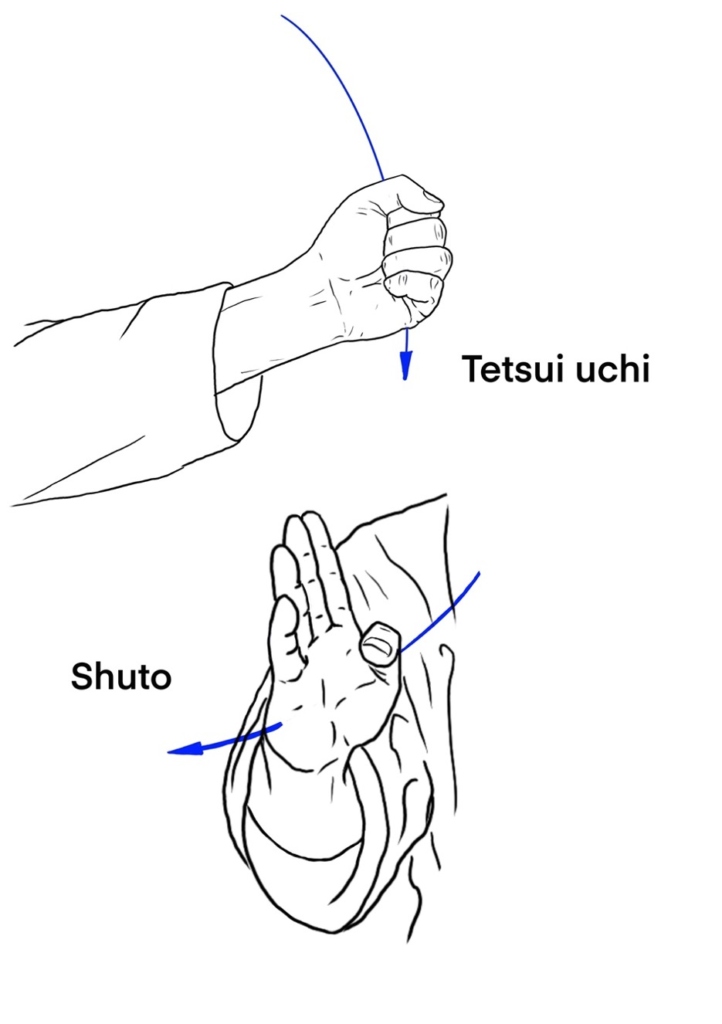Ensemble des techniques d’attaques indirectes (circulaires ou semi-circulaires) des poings, mains ouvertes et coude. On se sert des parties anatomiques pour percuter l’adversaire :
